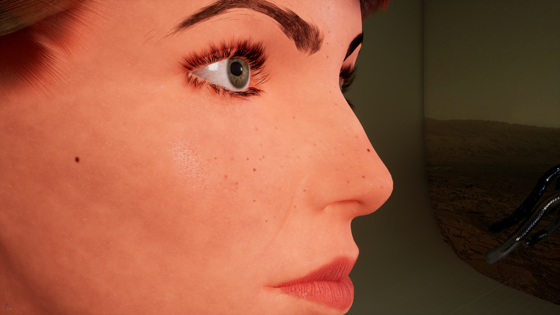 Hair was crafted in XGen with guides. Rendering leveraged Metahuman eye shaders and subsurface profiles, with a ZBrush cavity map breaking up surface roughness and doubled-up normals for extra skin detail.
