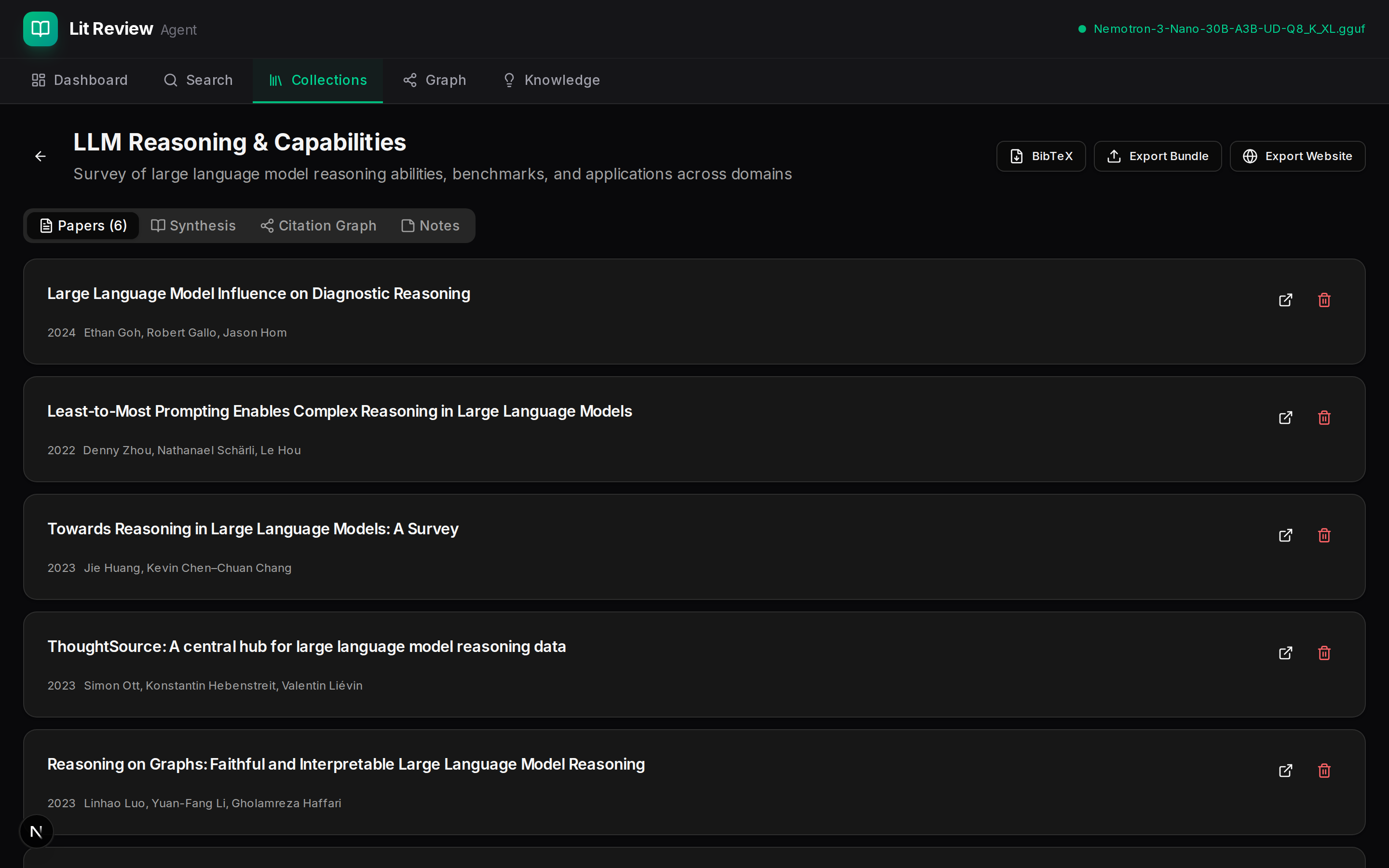 Automatically extracts findings, methods, gaps, and conclusions from papers into a searchable knowledge base. Export as BibTeX, JSON, or a deployable static website.